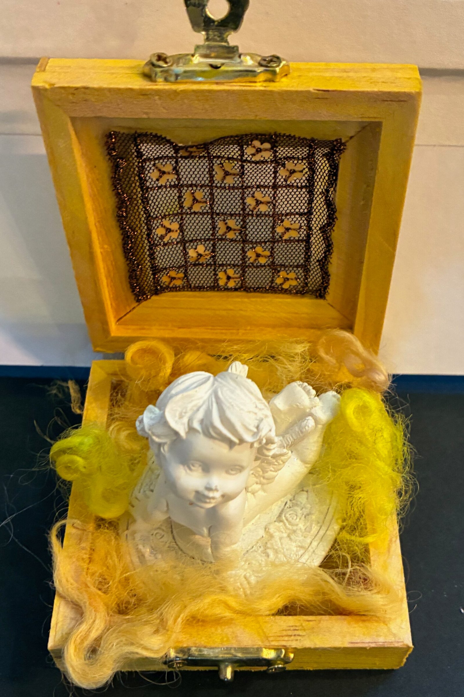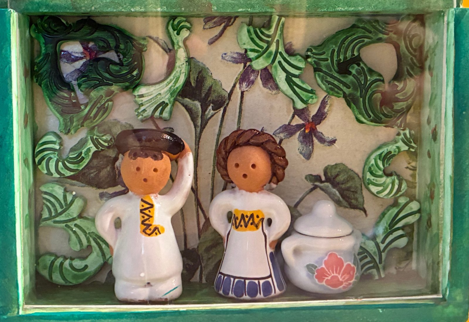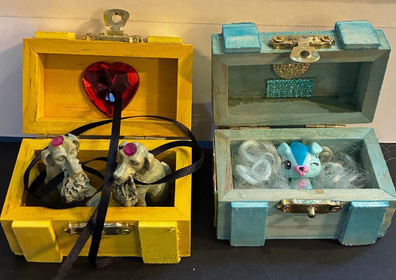 Oud-houten letterbak 1.00 x 0.60, Delfts Blauw ornamentjes