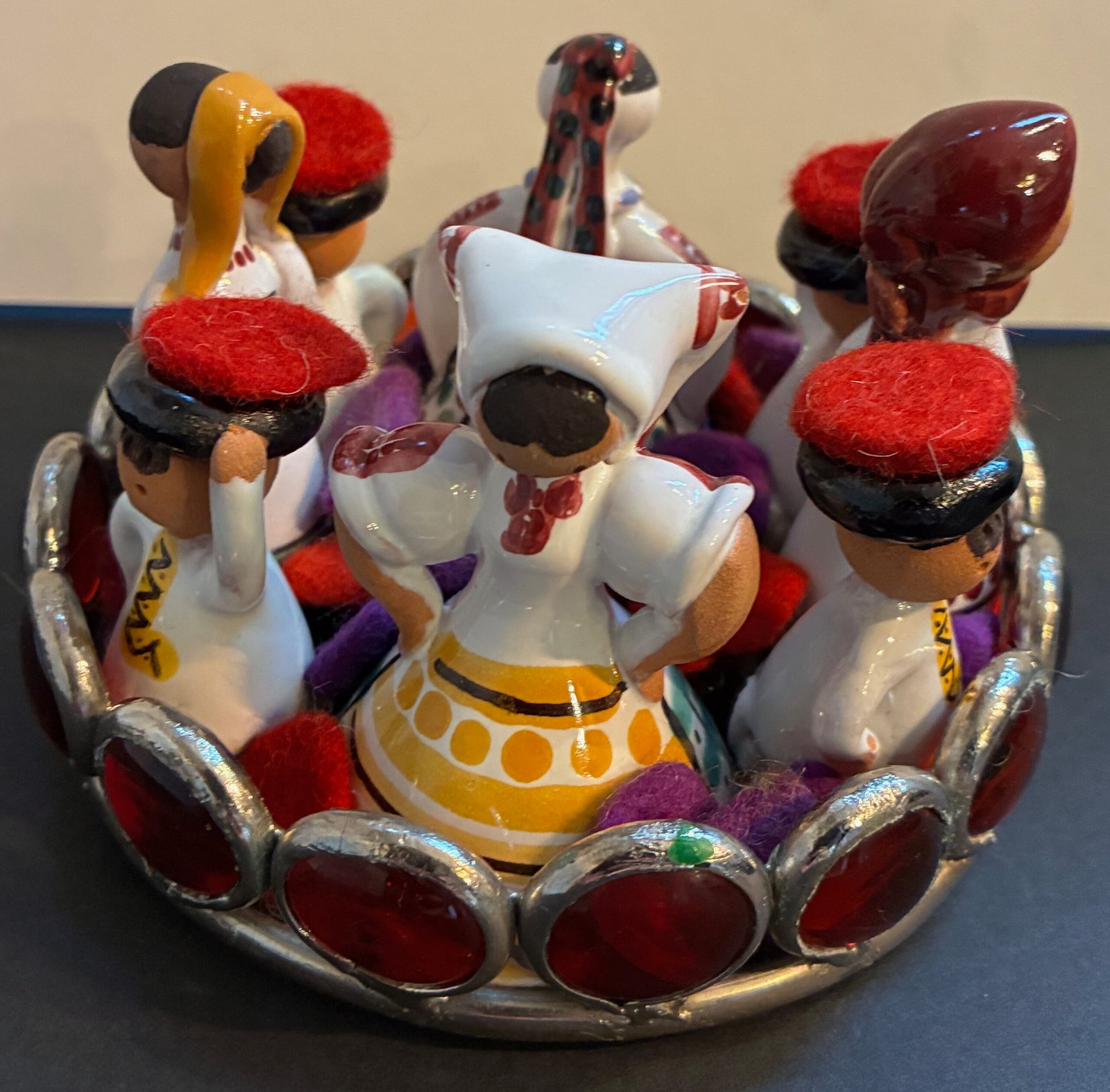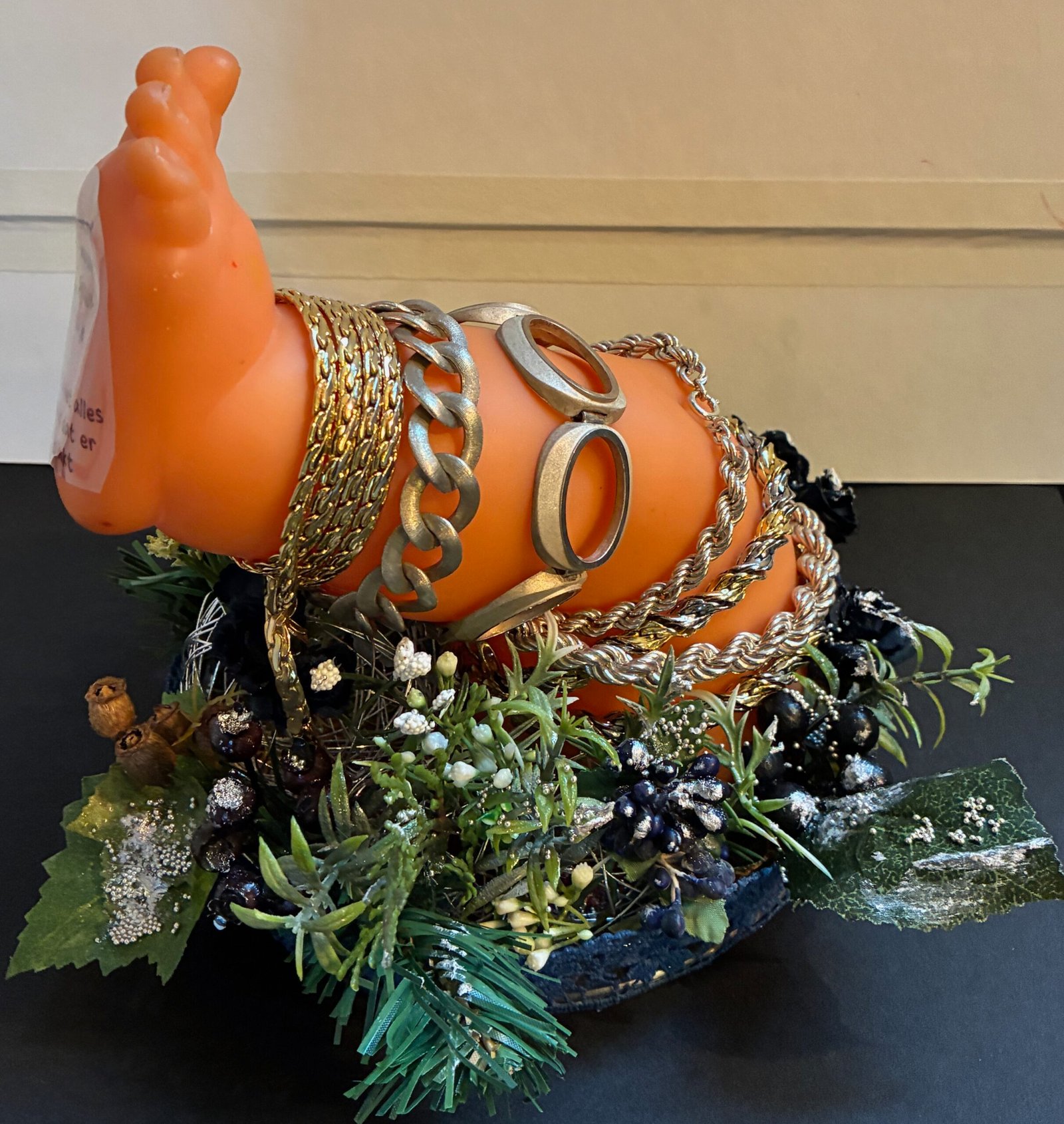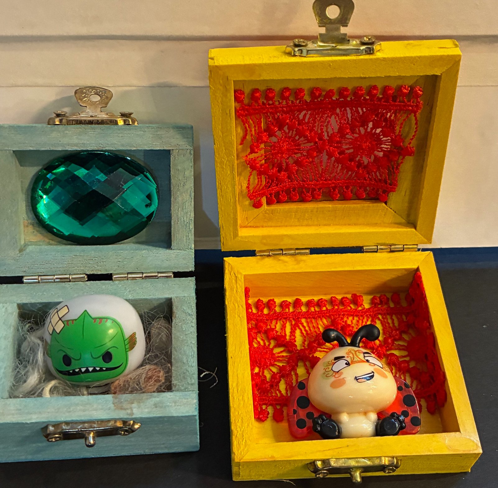 Houten mal voor bakstenen met “afval” van de tandarts’.